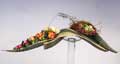BENTORNATA PRIMAVERA! GRANDE SUCCESSO A PADOVA IN OCCASIONE DELLA RECENTE EDIZIONE PRIMAVERILE DI FLORMART/MIFLOR Testo di Elisa Zamariola - Foto Prisma Studio di Ozzano Emilia (Bo) Flormar/Miflor ha aperto i battenti alla sua 50esima edizione venerd� 18 febbraio. L�affluenza, non cospicua come quella delle precedenti edizioni , � stata forse frenata dal blocco del traffico e dalle condizioni climatiche non favorevoli. I visitatori, molti dei quali provenienti dai Paesi dell�Est (Russia, Polonia, Ungheria, Croazia e Repubblica Ceca) non sono comunque mancati nel nostro stand, il cui allestimento � stato curato dal Laboratorio Nazionale di Arte Floreale. Una meravigliosa cornice a tema primaverile, che ha accolto gli splendidi accessori firmati Enzo De Gasperi: vasi importanti, piatti, vetreria e ceramiche di dimensioni considerevoli, adatti all�allestimento di grossi spazi espositivi. Per la realizzazione delle opere sono stati utilizzati elementi naturali come paglia, fieno, rami di salice contorto, di nocciolo, di betulla e di vite. L�ispirazione al mondo della natura caratterizza sempre le presenze del Laboratorio Federfiori, � l�elemento portante della filosofia del Gruppo. Nei loro incontri di lavoro e nelle loro ricerche, infatti, i componenti del Laboratorio studiano e sperimentano tecniche compositive� suggerite dalla ricchezza e dalla spontaneit� della natura stessa, cercando di carpirne la bellezza riproponendola nelle loro composizioni. Troviamo il pensiero del Laboratorio in ogni lavoro proposto nelle loro performances, e negli elementi compositivi sono molti i richiami alla natura e alla stagione primaverile: dalla paglia utilizzata nei vasi, ai nidi di rami in vegetazione con uova e fiori. Molti gli �oggetti floreali� proposti, vere e proprie opere di design, oggetti che gi� da soli costituiscono un elemento decorativo importante, e che trovano la loro completezza con fiori e verde. Di grande effetto la riproduzione di ambienti e habitat naturali, composizioni di piante di impatto visivo immediato e di lunga durata nel tempo (se viene conservato l�apparato radicale delle piante).� L�obiettivo � quello di creare un piccolo giardino, di dare una sensazione di spontaneit� d�insieme. Il Gruppo, composto da Alessia Malverdi, Raffaella Perego, Santina Roversi, Emiliano Amadei, Matteo Bertoni, Paolo Zadra, ha lavorato in armonia, sia nelle fasi� allestimento che durante le dimostrazioni, coordinato da Laura Lazzeri e Paolo Brugnara, con la regia di Emiliano Filippi. La manifestazione