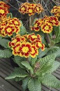 Primula di tipo elatior a fiore semplice, con fioritura da febbraio a marzo, con steli corti disponibili in molti nuovi colori: bicolore, giallo e arancio tipo tagetes.